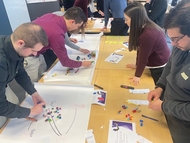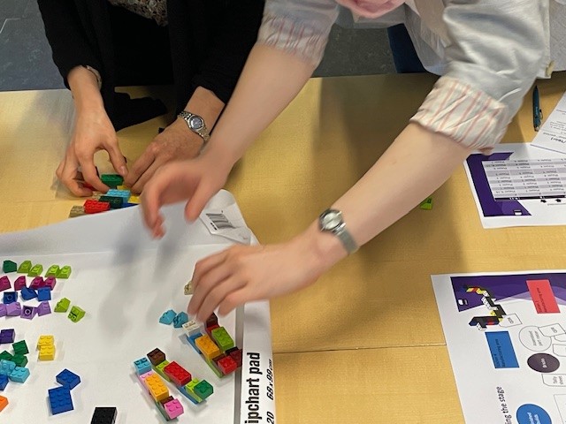 Legos create a playful atmosphere of experimentation and learning from "failures" without taking them too serious. It's a risk free enviroment for creativity.